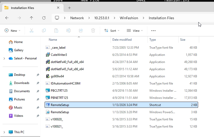 This copies the WinFashion folder (without subfolders) to C:\WinFashion. It also installs the fonts if they are not installed, as well as the PowerBuilder DLLs. It will then make a WinFashion shortcut on the desktop.